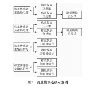 訊,支持 GM 協(xié)議、標(biāo)準(zhǔn) ModBus RTU /ASCII 等協(xié)議,,測量模塊利用接線端子與稱重傳感器、稱重儀表并線連接,具體連接方式如圖 2 所示。
