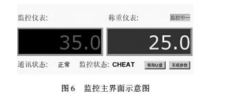 通訊狀態(tài): 當(dāng)前監(jiān)控終端與稱重儀表通訊狀態(tài),當(dāng)通訊中斷時狀態(tài)顯示“異常”;監(jiān)控狀態(tài): 當(dāng)監(jiān)控終端與稱重儀表的差值在設(shè)定范圍內(nèi)時顯示“正常”,否則顯示為“CHEAT”。