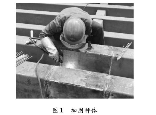 改變以前焊接撕裂部位并加固的方式,對撕裂變形部位進行切割,避免撕裂部位繼續延伸擴大,對撕裂部位用整塊鋼板做成U型槽形狀進行整體焊接,這樣就將焊接部位的受力做成一個整體,增加焊接鋼板承載力。