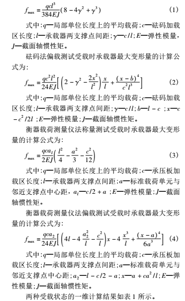 砝碼法稱量測試受載時承載器最大變形量的計算公式為: